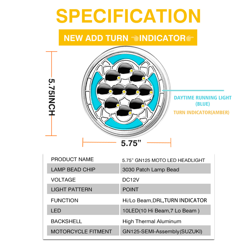 | Function | Daytime Running light, Low Beam and High Beam, Turn Indicator |