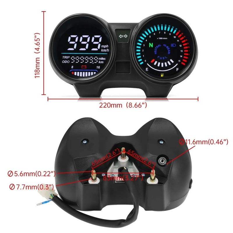 تم تصميم جهاز قياس LCD الرقمي الجديد CG125 CG150 CG160 مع غطاء بلاستيكي مصمم خصيصًا ، مما يضيف متانة إضافية وحماية رائعة.يحتوي على شاشة LED عالية الجودة تشير إلى السرعة الحالية وغيرها من المعلومات الأساسية.